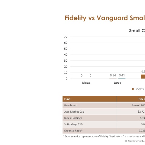 0.41 6.86 Micro Small Mid Large Vanguard Fidelity Vanguard Fidelity CRSP US Small Cap Index Russell 2000 Index $6.01 Bil $2.72 Bil 1,533 2,038 3% 3% 0.04% 0.025% *Expense ratios representative of Fidelity “Institutional” share classes and Vanguard “Institutional” share classes. 6 © 2022 Innovest Portfolio Solutions, LLC