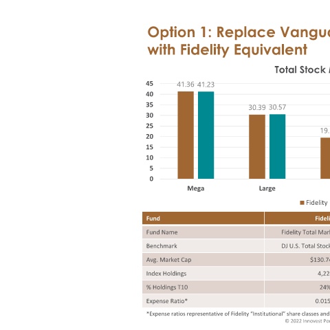 19.51 19.56 6.31 6.37 2.37 2.31 Micro Small Mid Vanguard Vanguard Fidelity Vanguard Total Stock Market Index Fund Fidelity Total Market Index Fund CRSP U.S. Total Market Index DJ U.S. Total Stock Market Index $131.58 Bil $130.74 Bil 4,107 4,224 24% 24% 0.04% 0.015% 9 © 2022 Innovest Portfolio Solutions, LLC