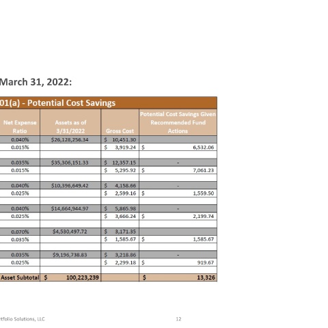 12 © 2022 Innovest Portfolio Solutions, LLC Potential Cost Savings • Annual savings based on assets as of March 31, 2022:
