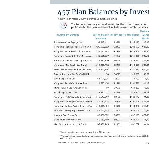 457 Plan Balances by Investment