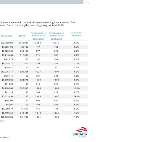 The balances reflected are based on plan participant status. The participant balances do not include any outstanding loan amounts. The