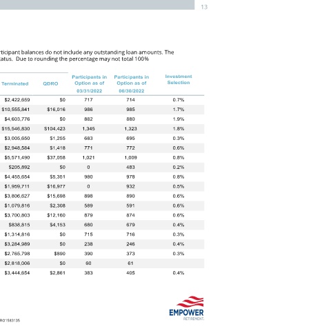 The balances reflected are based on plan participant status. The participant balances do not include any outstanding loan amounts. The