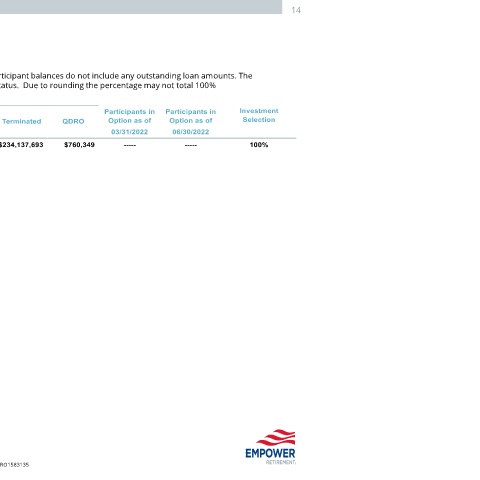 The balances reflected are based on plan participant status. The participant balances do not include any outstanding loan amounts. The