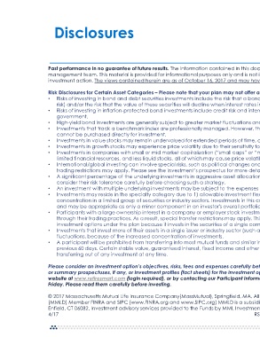 Risk Disclosures for Certain Asset Categories – Please note that your plan may not offer al