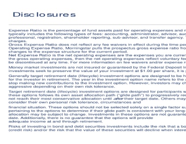 Operating Expense Ratio, Morningstar pulls the prospectus gross expense ratio fro