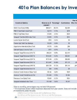 401a Plan Balances by Inve