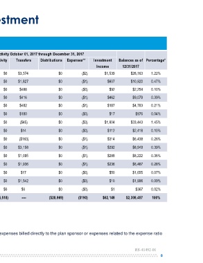 ctivity October 01, 2017 through December 31, 2017 Investm ent Balances as of Percentage*