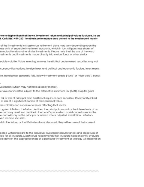 Disclosures end. corresponding mutual funds or other similar investments. Some plans invest directly in mutual funds or other similar investments. Please “funds” investments. appreciate as anticipated. Investing in foreign securities involves additional expenses and special risks, such as currency fluctuations, foreign taxes and in emerging and developing markets may be especially volatile. are more at risk of default and are subject to liquidity risk. Asset-backed and mortgage-backed securities are also subject to prepayment risk. Senior loans are typically lower-rated (more at risk of def
