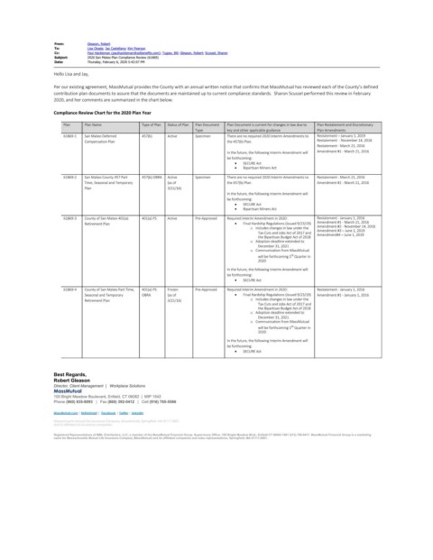Per our existing agreement, MassMutual provides the County with an annual written notice that confirms that MassMutual has reviewed each of the County’s defined