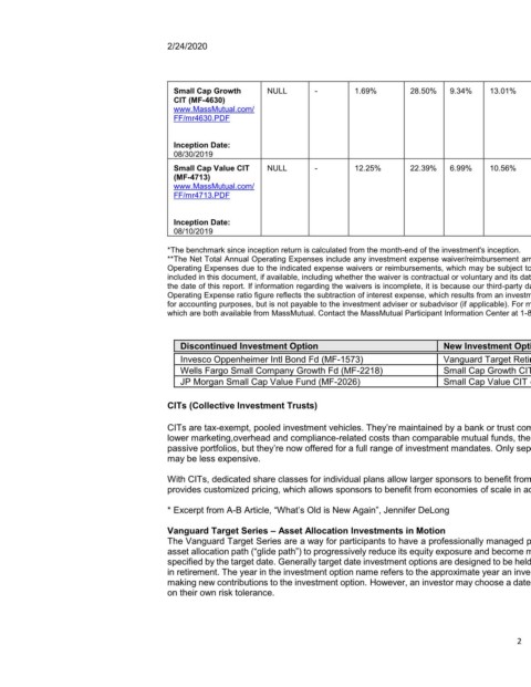 specified by the target date. Generally target date investment options are designed to be held beyond the presumed retirement date to offer a continuing investment option for the investor