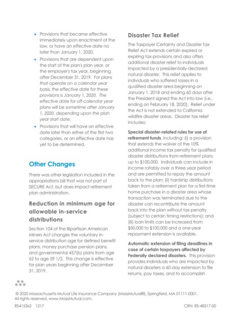 after December 31, 2019. For plans natural disaster. This relief applies to