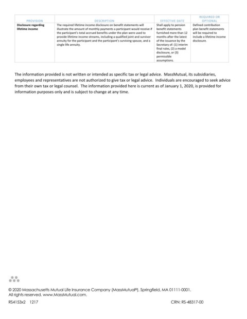 Disclosure regarding The required lifetime income disclosure on benefit statements will Shall apply to pension Defined contribution