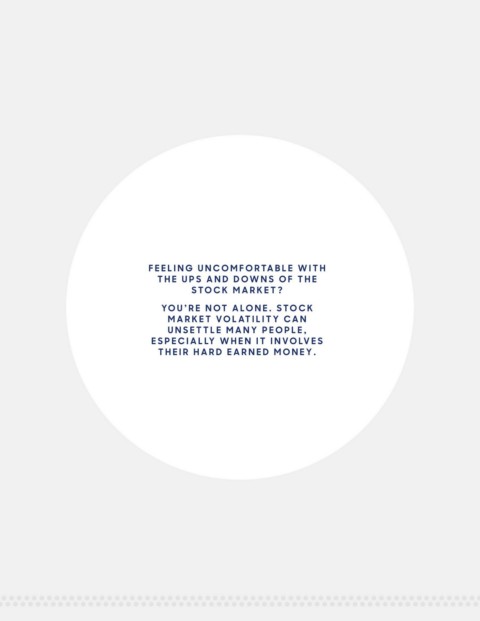 FEELING UNCOMFOR TABLE WITH THE UPS AND D O WNS OF THE S TO CK MARKET? YOU’RE NOT ALONE. S TO C K MARKET V OLATILITY C A N UNSETTLE MANY PEOPLE, ESPECIALLY WHEN IT INV OLVES THEIR HARD EARNED MONEY.