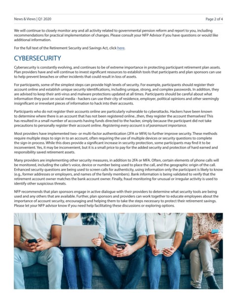 NFP recommends that plan sponsors engage in active dialogue with their providers to determine what security tools are being