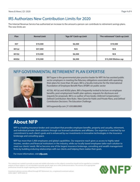 Bill Tugaw is the governmental plan practice leader for NFP. He has assisted public