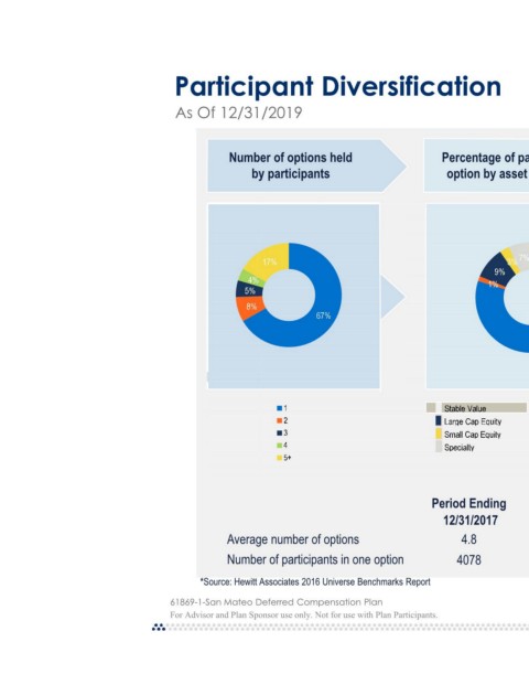 As Of 12/31/2019 Number of options held by participants Average number of options Number of participants in one option *Source: Hewitt Associates 2016 Universe Benchmarks Report 61869-1-San Mateo Deferred Compensation Plan For Advisor and Plan Sponsor use only. Not for use with Plan Participants.