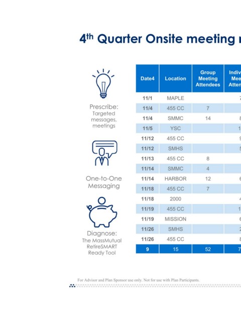 Prescribe: Targeted messages, meetings One-to-One Messaging Diagnose: The MassMutual RetireSMART Ready Tool