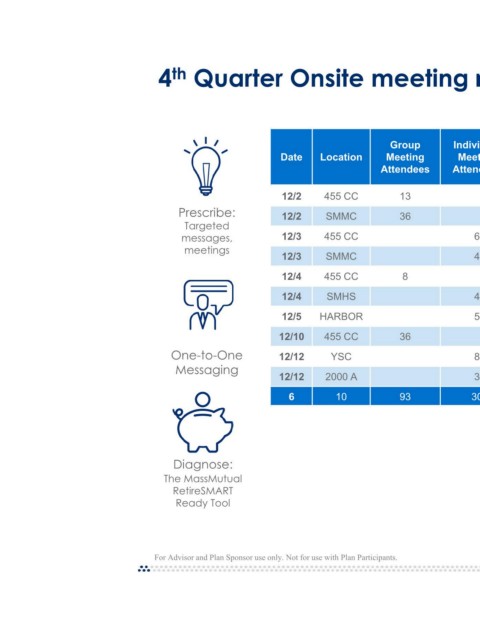 Prescribe: Targeted messages, meetings One-to-One Messaging Diagnose: The MassMutual RetireSMART Ready Tool