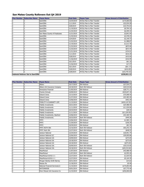 1 1 San Mateo County of Employees 11/21/2019 457(b) Plan to Plan Transfer $3,841.94