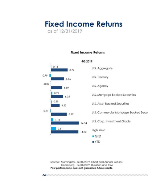 Income Returns MSCI Indexes: Total Net Return as of 12/31/2019 * 3 Year, 5 Year, and 10 year returns are annualized YTM Duration 10-Year* 5-Year* 3-Year* 1-Year 4Q 2019 2.31 5.87 3.75 3.05 4.03 8.72 U.S. Aggregate 1.80 6.48 3.13 2.36 3.31 6.86 U.S. Treasury U.S. Agency 2.41 5.85 2.50 2.32 3.08 5.89 U.S. Mortgage Backed Securities 2.54 3.21 3.15 2.58 3.25 6.35 U.S. Asset Backed Securities 2.05 2.13 2.72 2.22 2.61 4.53 U.S. Commercial Mortgage Backed Securities 2.57 5.21 5.74 3.41 4.22 8.27 U.S. Corp. Investment Grade 14.54 2.84 7.89