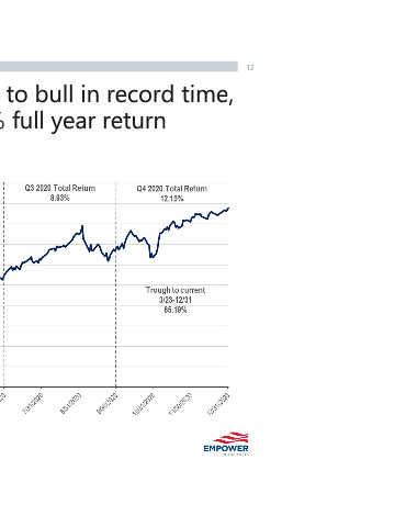12 The S&P 500 goes bear to bull in record time, posting a healthy 18.4% full year return Source: Morningstar Direct; GWCM Analysis FOR FINANCIAL PROFESSIONAL AND PLAN SPONSOR USE ONLY.