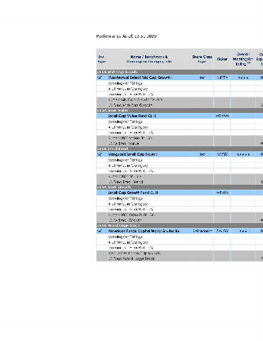 Name / Benchmark & Morningstar Category Info MassMutual Select Mid Cap Growth I Russell Mid Cap Growth TR USD Small Cap Growth Fund CL I1 American Funds Capital World Gr&Inc R6 MSCI ACWI Large Cap NR USD