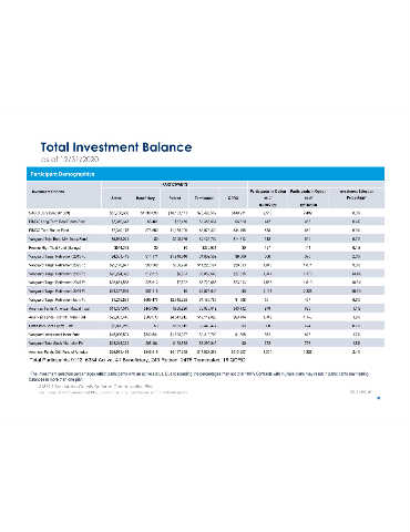 401(a) Plan Balances by Investment