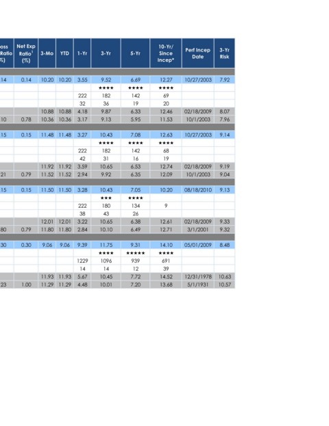 Gross Exp Ratio (%) 0.14 3.10 0.15 3.21 0.15 3.80 0.30 1.23
