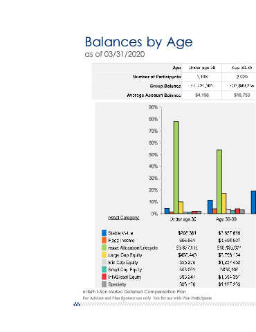 Balances by Age as of November 30, 2016 Balances by Age as of 03/31/2020 61869-1-San Mateo Deferred Compensation Plan RS-41492-03 For Advisor and Plan Sponsor use only. Not for use with Plan Participants. 12