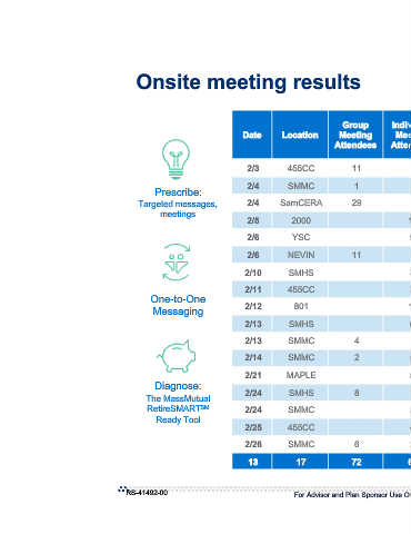 Prescribe: Targeted messages, meetings One-to-One Messaging Diagnose: The MassMutual RetireSMART SM Ready Tool RS-41492-00