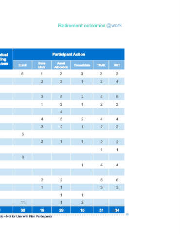 Retirement outcomes Participant Action Consolidate 3 1 2 1 2 1 1 1 1 2 15