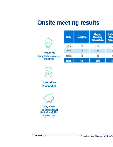 Prescribe: Targeted messages, meetings One-to-One Messaging Diagnose: The MassMutual RetireSMART SM Ready Tool RS-41492-00