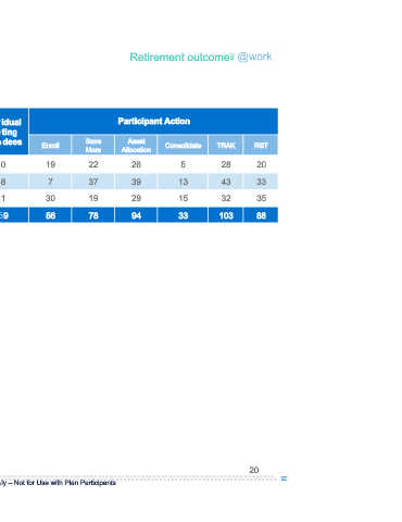 Retirement outcomes Participant Action Consolidate 5 13 15 33