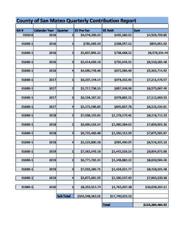 GA # Calendar Year Quarter EE Pre-Tax EE Roth Sum