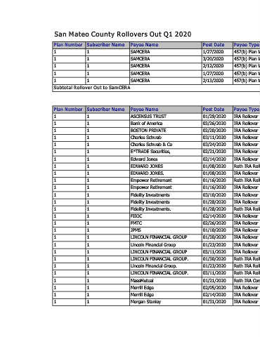 1 1 SAMCERA 3/20/2020 457(b) Plan to Plan Transfer $9,067.06 $22,722.56