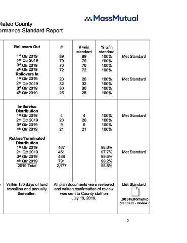 Plan Document F. Review plan documents for legal, $500 for failure to provide Within 180 days of fund All plan documents were reviewed Met Standard