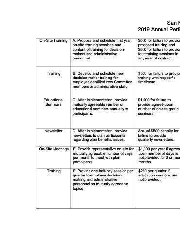Training B. Develop and schedule new $500 for failure to provide Provide half-day on-site Per previous agreement Met Standard