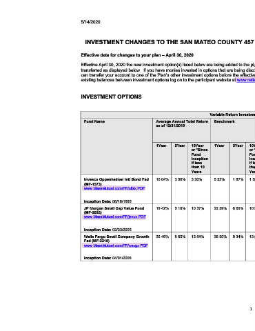 INVESTMENT CHANGES TO THE SAN MATEO COUNTY 457 DEFERRED COMPENSATION & 401(A) RETIREMENT PLANS