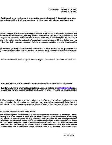 investment options. With information previously or concurrently provided to you regarding the plan’s existing and new investment options, you may consider whether you want to have the existing investments