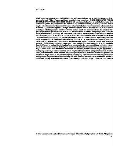 Monday through Friday. Please read them carefully before investing. | RISK DISCLOSURES FOR CERTAIN ASSET CATEGORIES – PLEASE NOTE THAT YOUR PLAN MAY NOT OFFER ALL OF THE