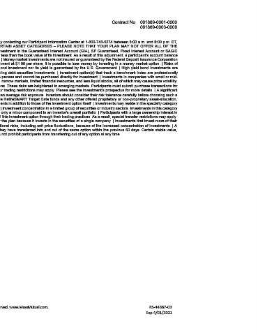 Monday through Friday. Please read them carefully before investing. | RISK DISCLOSURES FOR CERTAIN ASSET CATEGORIES – PLEASE NOTE THAT YOUR PLAN MAY NOT OFFER ALL OF THE