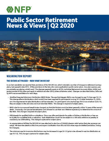 plans, had passed in late 2019. Of the provisions in the Act, a few were applicable to public sector plans. As a plan sponsor, you