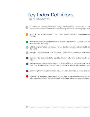 as of 03/31/2020 S&P 500 measures the performance of large capitalization U.S. stocks. The S&P 500 is a market-value-weighted index of 500 stocks. The weightings make each company’s influence on the Index performance directly proportional to that company’s market value. Europe, Australasia, and the MSCI EAFE is a Morgan Stanley Capital International Index that is designed to measure the performance of the developed stock markets of Far East. Russell 2000 measures the performance of small capitalization U.S. stocks. The Russell 2000 is a market-value-weighted index of the 2,000 smallest stock