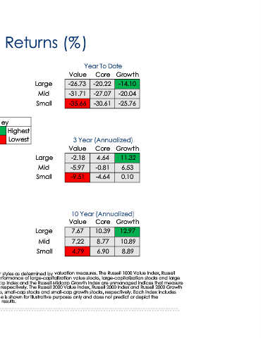 Growth -14.10 -20.04 -25.76 Growth 0.91 -9.45 -18.58 Growth 10.36 5.61 1.70 reinvested dividends and cannot be purchased directly by investors. Index performance is shown for illustrative purposes only
