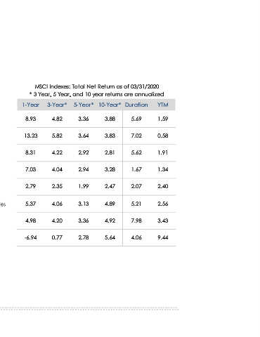 MSCI Indexes: Total Net Return as of 03/31/2020