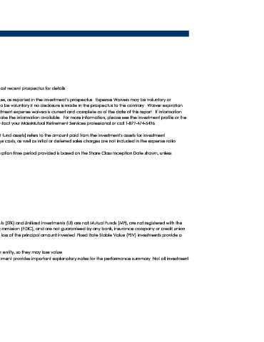 1 Net Expense Ratio Details Name Invesco Oppenheimer International Bd R6 JPMorgan Small Cap Value R6 Wells Fargo Small Company Growth Inst otherwise noted in the "Investment Disclosures" below. SV = Fixed Rate Stable Value UI = Unitized Investment SIA = Separate Investment Account STK = Company Stock Account MF = Mutual Fund CIT = Collective Investment Trust guarantee of principal backed by a book value guarantor. options are available for all plans.