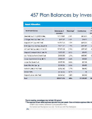 expenses deducted from *Due to rounding, percentages may not total 100 percent. plan assets. Does not include expenses billed directly to the plan sponsor or expenses related to the expense ratio of investments under the plan. 61869-1-San Mateo Deferred Compensation Plan RS-41492-03 For Advisor and Plan Sponsor use only. Not for use with Plan Participants. 5