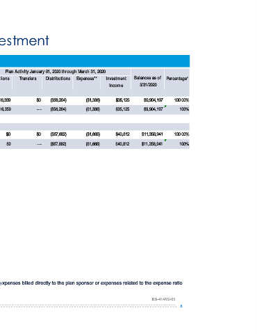 Plan Activity January 01, 2020 through March 31, 2020