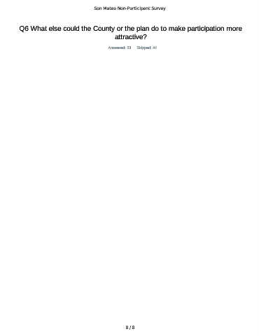 San Mateo Non-Participant Survey Q6 What else could the County or the plan do to make participation more attractive? Answered: 23 Skipped: 44 8 / 8