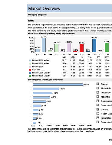 The worst performing U.S. equity index for the quarter was Russell 1000 Growth, returning a positive 0.94%